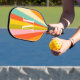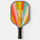 blue and orange pink yellow Retro colorful stripes pattern monogram pickleball paddle ,