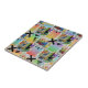 Colorful urban graffiti patchwork pattern ceramic tile featuring bold abstract blocks, expressive brush strokes, scribbles, stars, and mixed-media textures in bright blue, yellow, pink, orange, and black. Energetic and edgy with a modern street art aesthetic, this seamless design is ideal for graffiti art lovers, maximalist style fans, creative teens, and contemporary art enthusiasts.