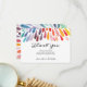 Colorida, Cartões de agradecimentos Arco-Íris. Esta placa é projetada com um arco-íris de cores em forma de gotas com estilização do tipo aquarela. Personalize este design com seu nome qualquer mensagem personalizada que você queira incluir! A cor de fundo está definida como branca, mas você pode escolher uma cor de preenchimento de sua escolha.
