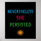 Esta poster colorida apresenta um sol amarelo e o texto: Apesar disso, ela persistiu. Isto tornou-se uma batalha simbólica pela coragem e integridade de Elizabeth Warren e de todas as mulheres que defendem aquilo em que acreditam. Personalize facilmente o texto.