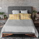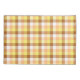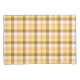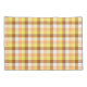 Este travesseiro apresenta um padrão colorido de xadrez automática em amarelo, laranja e marrom.