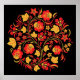 O tradicional design Khokhloma, do povo russo, vem geralmente em um padrão floral vermelho e amarelo em fundo preto. Nomeado depois da aldeia russa Khokhloma, onde este artesanato em particular tinha começado já no século XVII.