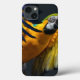 Colourful flying Ara on a dark background