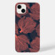 Padrão vetorial feito de corais de ventilador em cor viva de coral em fundo azul escuro.
