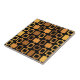 Um simples padrão minimalista inspirado na abstrato da era atômica dos anos 1950, com colunas de quadrados arredondados em tons de laranja, com fundo preto.