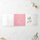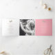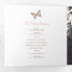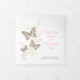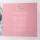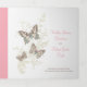 Um programa de renovação de casamento ou cerimônia de casamento de seis páginas. Edite este programa de casamento com seus próprios nomes, datas, apresentação, texto da cerimônia, assistentes de festa de casamento, foto do seu primeiro elopeio ou casamento restrito, ou uma foto do seu noivado, e adicione suas próprias palavras de obrigados no verso. Estão disponíveis borboletas cor-de-rosa, castanho, lacas e creme, bem como outros produtos de casamento coloridos e opções de cores. Arte e design originais pintadas com borboleta por Sarah Trett para www.mylittleedenweddings.com no Zazzle.