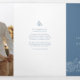 Flur de lis estilizada e primavera de flor branca de cinza azul e programa de desenho de arte de vinhas com duas fotos de cheio. Personalize com suas próprias iniciais de monograma, data do evento, detalhes da cerimônia de casamento, nomes de festas de casamento, palavras de obrigados e duas fotos especiais. Outras cores e itens de casamento correspondentes disponíveis. © Desenho manual original e design por Sarah Trett para www.mylittleedenweddings.com no Zazzle.