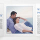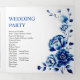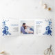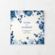 Flores florais azuis, flores de peônia florais, cerimônia de casamento e programa de festas. Apresentando um belo design floral floral Chinoiserie adornada com delicadas flores de peônia, este cartão é inspirado pela porcelana e pela arte clássica chinesa. O cobalto, o índio e os tons brancos evocam a elegância das pinturas de tinta, acrescentando um toque de romance à sua celebração. A peça do centro interior destaca uma ilustre fotografia do casal, criando um toque pessoal. Os nomes dos casais são exibidos elegantemente na tipografia clássica, adicionando elegância à apresentação geral.