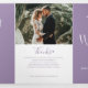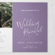 Um texto moderno de seis páginas com pouco programa de renovação de casamento de corações em roxo mudo e branco. Edite este programa de casamento com seus próprios nomes de renovação de casamento, datas, introdução, redação de cerimônias, assistentes de festa de casamento, foto de seu primeiro elopeio ou casamento restrito, e seus obrigados. Design original por www.mylittleedenweddings.com