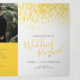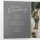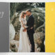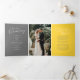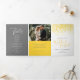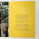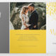 Um programa de renovação de casamento de seis páginas, amarelo de arte e cinzas. Edite este programa de casamento com seus próprios nomes de renovação de casamento, datas, introdução, redação de cerimônias, assistentes de festa de casamento, foto de seu primeiro elopeio ou casamento restrito, e seus obrigados. Arte original e design por www.mylittleedenweddings.com
