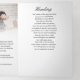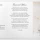 Este elegante folheto de programa de funeral é cuidadosamente projetado para homenagear a memória de um ente querido, ao mesmo tempo em que fornece um souvenir significativo para familiares e amigos. A capa frontal exibe uma foto querida, juntamente com o nome completo e as datas de vida, enquanto as páginas internas apresentam agradecimentos, um poema comovente e a ordem completa do serviço, incluindo hinos, leituras e palavras de familiares e clérigos. Uma seção de tributo dedicada destaca a personalidade, conquistas e legado, garantindo que a história deles seja lindamente preservada. Profissionalmente projetado com um layout limpo e tipografia atemporal, este programa memorial pode ser personalizado com fotos, poemas ou escrituras de sua escolha, criando uma lembrança verdadeiramente única. Perfeito para guiar os convidados durante o serviço, ao mesmo tempo em que oferece conforto, este souvenir pode ser guardado e apreciado muito tempo após a cerimônia. Um programa de celebração de vida personalizável como este não apenas homenageia seu ente querido com dignidade e graça, mas também fornece aos convidados uma maneira tocante de refletir sobre a memória dele.