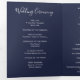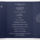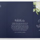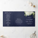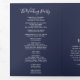 Um elegante programa de casamento floral com um belo arranjo de flores brancas e cor-de-água, de pedras brancas e verde. Mostrada com uma cor azul de fundo marinho que pode ser personalizada para corresponder ao seu tema de casamento. Basta selecionar o botão 'personalizar' para ver opções adicionais de design.