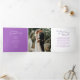 Um programa de renovação do casamento roxo de arte moderna de seis páginas. Edite este programa de casamento com seus próprios nomes de renovação de casamento, datas, introdução, redação de cerimônias, assistentes de festa de casamento, foto de seu primeiro elopeio ou casamento restrito, e seu obrigado. Arte original e design por www.mylittleedenweddings.com