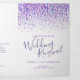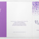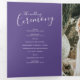 Um programa de renovação do casamento roxo de arte moderna de seis páginas. Edite este programa de casamento com seus próprios nomes de renovação de casamento, datas, introdução, redação de cerimônias, assistentes de festa de casamento, foto de seu primeiro elopeio ou casamento restrito, e seus obrigados. Arte original e design por www.mylittleedenweddings.com