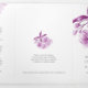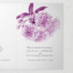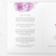 Arte de aquarela simples, com três faces, de cereja, florescendo em um programa de núpcias branco. Parte do conjunto de papelaria de casamento de cor d'água florescente. Bonito púrpura e cinza. Edite este programa de casamento com seu próprio nome, datas, texto da cerimônia, assistentes de festa de casamento e obrigados. Elegante programa de cerimônia de casamento simplesmente substitua o texto da amostra por seus próprios detalhes de casamento. Pintura e design por Sarah Trett. www.sarahtrett.com para www.mylittleedenweddings.com