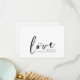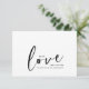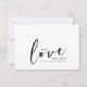 Doce e simples obrigado seu cartão do dia do casamento. Apresentando "amor" em um roteiro preto moderno sobre um fundo branco e mutável com um coração pequeno nas costas.