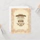 Texto tipográfico em marrom, centrado no meio. Uma borda floral, marrom-claro, cai em todos os lados do cartão. Fundo de padrão texturizado branco amarelado. Personalizável.