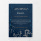Um cartão de aniversário maravilhosamente projetado com um rico fundo azul marinho acentuado com ouro delicado e uma arte azul de balões, galerias e caixas de presentes. O cartão inclui uma mensagem de aniversário calorosa e comovente, perfeita para celebrar alguém verdadeiramente especial em sua vida — seja um amigo, membro da família ou amado. O design refinado e o tom emocional tornam-no adequado para saudações digitais e impressas.