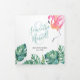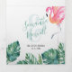 Novos convites para casamentos costeiros triplicados num design tropical da Flórida. O flap do meio externo apresenta a sua foto de casais. Os detalhes são definidos em uma tipografia de texto de letra de tendência com uma letra de serifa tradicional. Uma maca da minha mão original pintou exótica aquarela cor rosa flamingo e monstera folha verde armação sua informação de evento. Personalize cada flap com seus detalhes de casamento, foto, rsvp e endereço de retorno. Perfeito para casamentos de praia tropical ou casamentos de destino em Florida Keys e Key West. Para ver a minha coleção completa de todos os convites para um casamento visite www.zazzle.com/dotellabelle