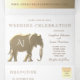 Simples, elegante, moderno, contemporâneo, convite de casamento tudo-em-um com monograma gigante único - elefante em folha dourada - símbolo de amor, fertilidade e boa sorte.