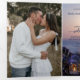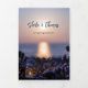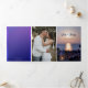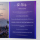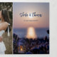 Convite de casamento triptico na praia ou destino com duas das suas fotos favoritas. O design mostra uma cena costeira boêmia com lanterna e vela com faíscas de luz sobre o oceano. O painel de detalhes tem um design roxo moderno. Você pode usar o espaço também para adicionar todas as informações que você colocaria em um cartão de inclusão, como acomodação ou direções, etc. Alternativamente, você pode usar a última página como cartão de resposta.