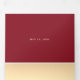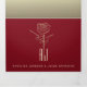Este convite de casamento elegante de 3-em-1 apresenta um fundo vermelho burgundy ousado, detalhes florais dourados românticos e um painel de foto de largura total, perfeito para casais modernos que planejam uma celebração estilosa. Com seções de RSVP e detalhes embutidas, este formato tri-fold oferece uma solução prática e ecológica que se sente luxuosa e pessoal. Um envelope separado é necessário para envio.