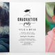 Celebrar os dois formandos com estes modernos convites triplicados de dupla graduação com um simples fundo branco, fotos dos irmãos, o ditado 'eles fizeram!', e um modelo de festa/anúncio que é fácil de personalizar.