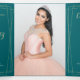 Com Dobra Tripla Convite Floral de Quinceanera Verde Triplo