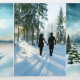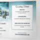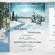 Um convite para três casamentos no inverno com duas das suas fotos favoritas e uma pintura aquarela de uma cena terrestre de inverno com pinheiros. Você pode usar o espaço também para adicionar todas as informações que você colocaria em um cartão de gabinete, como acomodação ou direções, etc. Como alternativa, você pode usar a última página como placa RSVP.