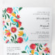 Personalize este belo convite de casamento bilíngue em qualquer duas línguas - o inglês e o espanhol ilustrados. Este bordado floral mexicano inspirou design em azuis pastel brilhantes, laranja, roxo e amarelo dois espaços de convite para cheios, de modo que todos os seus convidados possam ver ambos os idiomas, além de um cartão RSVP integrado e de um site de casamento. Tudo em um. Também disponível com fundo preto. Por favor, contacte-me para fazer a correspondência com designs de papelaria de casamento.