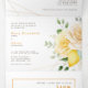 Personalize este sonho de casamento bilíngue dos cítricos em qualquer dois idiomas - o inglês e o espanhol ilustrados. O limão e rosa em amarelo suave natural, pinks e verdes armam dois espaços de convite para cheios, para que todos os seus convidados possam ver ambos os idiomas, além de um cartão RSVP integrado e de um espaço no site de casamento. Excelente para o verão, jardim e casamentos mediterrânicos! Inclui a opção para adicionar uma foto. Tudo em um. Por favor, contacte-me para fazer a correspondência com designs de papelaria de casamento.