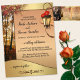 Convite para casamento outono triplo com três das suas fotos favoritas, com design de ouro rosa e ouro no outono, com uma lanterna e textos festivos. Você pode usar o espaço também para adicionar todas as informações que você colocaria em um cartão de gabinete, como acomodação ou direções, etc. Como alternativa, você pode usar a última página como placa RSVP. O código QR é opcional.