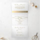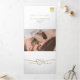 Simples, elegante, minimalista convite de casamento branco puro triplo, com belo coração de corda de folha de ouro e fotografia do casal. Adicione sua foto, detalhes do casamento e Rsvp.
