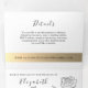 Simples, elegante, minimalista e moderno convite para casamento preto e branco de ouro, com um único adorável desenho de rosa e uma fotografia personalizada do casal. Adicione sua foto, detalhes do casamento e Rsvp.
