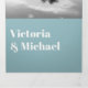 Casamento elegante e simples para a noiva e noiva modernas. Todos em um convite triplo que vem com placas de resposta RSVP, Detalhes e informações e uma foto do casal. Design limpa com fontes tipográficas arrojadas em azul e branco poeirentos. Perfeito para qualquer casamento!