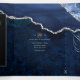 Marinho azul e falso brilho prateado agate convite de casamento de pedra personalizável para suas especificidades. Este é um pacote de cheio em um com detalhes de convidado e rsvp para que o destinatário possa simplesmente cortar o último painel e postar.