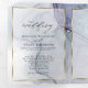 Salpico etéreo de manchas de tinta alcoólica em tons de azul oceano, verde-azulado e roxo âmbar rico - cada seção destacada com uma sobreposição emoldurada em ouro branco translúcido, na frente central está sua foto acentuada com uma moldura dupla dourada e por trás da sobreposição branca translúcida para um apelo esotérico - dentro da capa há uma segunda foto de sua escolha - o convite de casamento é central e a resposta destacável está na última seção. Este convite é projetado para ser enviado por correio, pois é dobrado sem envelope - Este lindo design abstrato moderno é perfeito para um convite de casamento completo, incluindo resposta com escolha de refeição pré-endereçada e destacável para que seus convidados possam facilmente enviar de volta - um convite de casamento impressionante tudo-em-um.