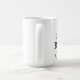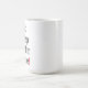 Caneca branca com texto preto e um ponto de exclamação vermelho