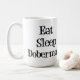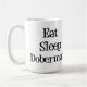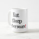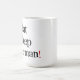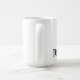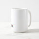 Caneca branca com texto preto e um ponto de exclamação vermelho