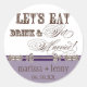 Fontes elegantes e divertidas anunciam a mensagem, "Vamos coma, beba e se case!" em um maravilhoso e caprichoso Concurso de Casamento. Em uma paleta de cores clara, nítida, lavanda, púrpura de ameixa, castanha de chocolate e branca, é o melhor da safra com uma torção moderna. O adesivo ou selo tem o texto e seus nomes com a data do casamento. Há um conjunto completo de produtos disponíveis com este design e podemos fazer isso em qualquer combinação de cores que você desejar.