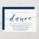 Tema azul marinho clássico e moderno, cartão de convite de casamento furtivo (Coma, Beba e Dance). É perfeito para a sua celebração casual de casamento furtivo à beira do lago.