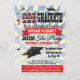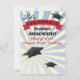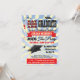 Coma, Beba e Formando com este super divertido convite para festas de formatura ao estilo poster. Apresenta tipografia divertida, faixa e um boné jogado no ar contra um fundo de explosão solar. Excelente para qualquer formando! Ilustração desenhada à mão por McBooboo.