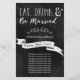 Esta suíte de convites de casamento moderno e fofo apresenta um olhar de quadro com "Comer, Beber e Casar" em texto escrito à mão.