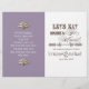 Uma opção bonita, divertida e barata para programas de casamento. Eles serão enviados para você de forma plana e você precisará dobrá-los em 2/1 ou a maioria das compras de impressão local fará isso por você a uma taxa nominal. Fontes elegantes e divertidas anunciam a mensagem, "Vamos coma, beba e se case!" em um maravilhoso e caprichoso Concurso de Casamento. Numa paleta de cores clara, nítida, lavanda, castanha de chocolate e branca, é o melhor de vintage com uma reviravolta moderna. O programa de casamento tem o texto e seus nomes com sua data de casamento, assim como sua citação favorita, escritura ou? no verso. O interior está preparado para você personalizar. Se você precisar de assistência sobre isso há uma pequena taxa para o serviço, basta enviar um e-mail para nós. Há um conjunto completo de produtos disponíveis com este design e podemos fazer isso em qualquer combinação de cores que você desejar.