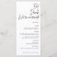 Este cardápio de casamento apresenta uma bela fonte de roteiro mostrando as palavras "coma, beba, somos casados" para uma maneira elegante de mostrar seu cardápio de casamento aos seus convidados.