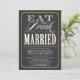 Vintage Coma Bebida e Seja Casado com Convites de Festa de noivado - apresenta um estilo de deco de arte com o popular "Comer, Beber e Ser Casado" em fontes elegantes.