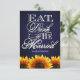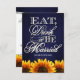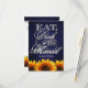 Coma Bebida e seja casado com Cartões RSVP de Casamento Russo - combine com os convites e mais itens encontrados abaixo nesta página. Completar o tema do casamento de girassol com estes cartões de rsvp que apresentam um quadro azul como fundo com "Comer, Beber & Ser Casado" em divertido e elegante escrita com girassóis vibrantes na parte inferior da frente e traseira de cada cartão.Estes cartões de RSVP de casamento estão configurados para um estoque básico de alta qualidade; no entanto, você pode mudar o estoque para linho, feltro (gravado), reciclado e vários bordos metálicos aparece se quiser com o número 2 (escolha seu estilo, tamanho e tipo de papel) abaixo do botão de adicionar ao carrinho em laranja. Uma lista dos custos adicionais de uma carteira de cartões mais antiga é apresentada também sob essa opção. Cada placa RSVP vem com um envelope branco equipado. Dicas para personalizar suas placas RSVP de Casamento Este estilo permite uma recepção no estilo de buffet. Se você precisar de um RSVP de 2 ou 3 opções jantadas, role para baixo até encontrar os produtos disponíveis. Clique no botão personalizar cor de laranja abaixo da demonstração de cartão RSVP de casamento acima para alterar a fonte, coloração de texto ou tamanho do que você preferir. Se você estiver satisfeito com o estilo da fonte, a cor do texto e os tamanhos, poderá usar o recurso de personalização à direita da demonstração para simplesmente mudar as informações da demonstração para os detalhes pessoais do seu casamento. Basta verificar a demonstração depois de alterar os detalhes (a demonstração será automaticamente alterada depois que você fizer qualquer alteração nas cores de texto, tamanho ou fonte). A demonstração fornecerá uma prova do seu convite após o fazer das mudanças. Clique no botão de aumento acima da demonstração RSVP para obter uma prova de exibição de cheio. Você também pode clicar em cada imagem (frontal e traseira) para sair de cada lado após o fazer das alterações. Outra dica é clicar no botão design acima da demonstração para aproximar mais detalhes e obter uma melhor visualização das cores e decor do design. Certifique-se de verificar cada lado da placa antes de adicionar ao carrinho para fazer check-out seguindo as dicas acima.