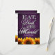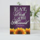 Coma Bebida e seja casado com Cartões RSVP de Casamento Russo - combine com os convites e mais itens encontrados abaixo nesta página. Completar o tema do casamento de girassol com estes cartões de rsvp que apresentam um quadro de fundo roxo com "Comer, Beber & Ser Casado" em uma escrita divertida e elegante com girassóis vibrantes na parte inferior da frente e traseira de cada cartão.Estes cartões de RSVP de casamento estão definidos como um estoque básico de alta qualidade; no entanto, você pode mudar o estoque para linho, feltro (gravado), reciclado metálico e vários tons se você quiser com o número 2 (escolha seu estilo, tamanho e tipo de papel) abaixo do botão laranja adicionar ao carrinho. Uma lista dos custos adicionais de uma carteira de cartões mais antiga é apresentada também sob essa opção. Cada placa RSVP vem com um envelope branco equipado. Dicas para personalizar suas placas RSVP de Casamento Este estilo permite uma recepção no estilo de buffet. Se você precisar de um RSVP de 2 ou 3 opções jantadas, role para baixo até encontrar os produtos disponíveis. Clique no botão personalizar cor de laranja abaixo da demonstração de cartão RSVP de casamento acima para alterar a fonte, coloração de texto ou tamanho do que você preferir. Se você estiver satisfeito com o estilo da fonte, a cor do texto e os tamanhos, poderá usar o recurso de personalização à direita da demonstração para simplesmente mudar as informações da demonstração para os detalhes pessoais do seu casamento. Basta verificar a demonstração depois de alterar os detalhes (a demonstração será automaticamente alterada depois que você fizer qualquer alteração nas cores de texto, tamanho ou fonte). A demonstração fornecerá uma prova do seu convite após o fazer das mudanças. Clique no botão de aumento acima da demonstração RSVP para obter uma prova de exibição de cheio. Você também pode clicar em cada imagem (frontal e traseira) para sair de cada lado após o fazer das alterações. Outra dica é clicar no botão design acima da demonstração para aproximar mais detalhes e obter uma melhor visualização das cores e decor do design. Certifique-se de verificar cada lado da placa antes de adicionar ao carrinho para fazer check-out seguindo as dicas acima.