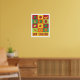 A poster de arte da cozinha da EAT COLORS em uma design moderna com um toque de arte na pop nos lembra de comer frutas e legumes saudáveis todos os dias. Frutas e legumes coloridos num brilhante e alegre impressão para promover uma alimentação saudável e fornecer uma cor viva na cozinha moderna. As crianças também adoram. As ilustrações vermelhas, verdes, amarelas e laranja frutas e vegetais nos quadrados geométricos fazem uma saborosa explosão de cor em sua parede. Bom para a sala de aula também!