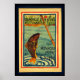 Poster de esforço de guerra francês de 1918. Uma pintura de poster vintage da pesca enquanto conserva e come menos carne. A tradução de francês para inglês é "Coma Menos Carne para Salvar Nossa Pecuária".